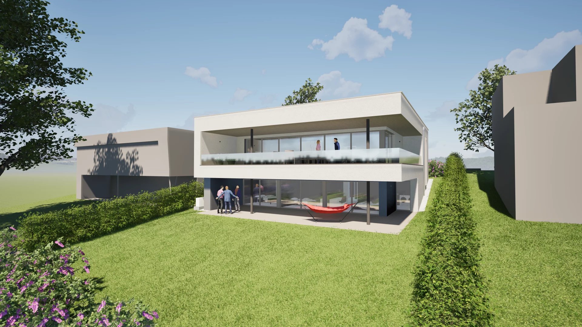 Nous proposons un projet de maison unifamiliale à quatre façades (deux variantes sont présentées à titre d’exemple), dotée d’un jardin avec terrasse et offrant une vue imprenable. Le bien comprend également un garage intérieur ainsi qu’un très bel espace de vie. Le projet architectural peut être configuré avec 2, 3 ou 4 chambres selon vos besoins.