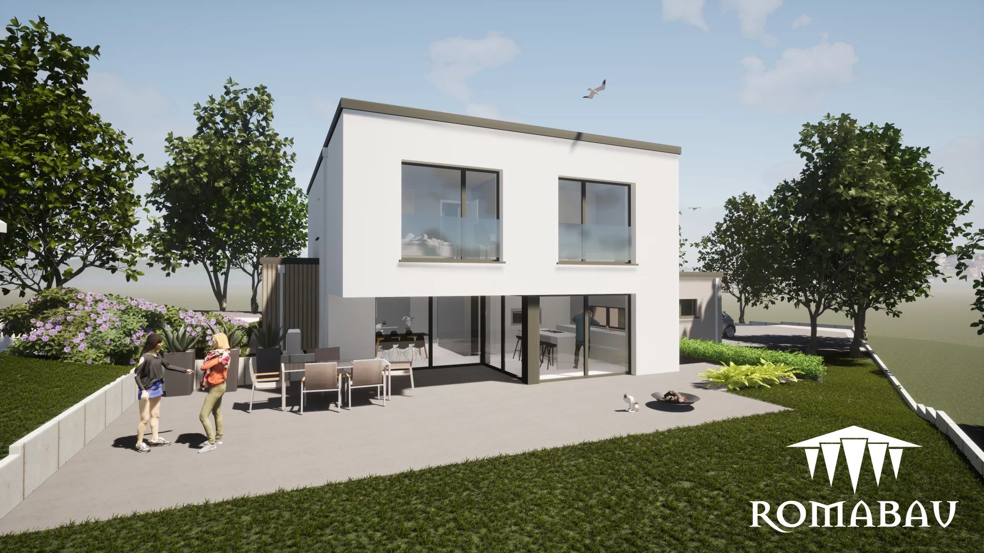 Unser Projekt bietet ein schlüsselfertiges Haus mit vier Fassaden, das modernen Komfort und hochwertige Materialien auf einem Grundstück von 8,77 Ar perfekt vereint.