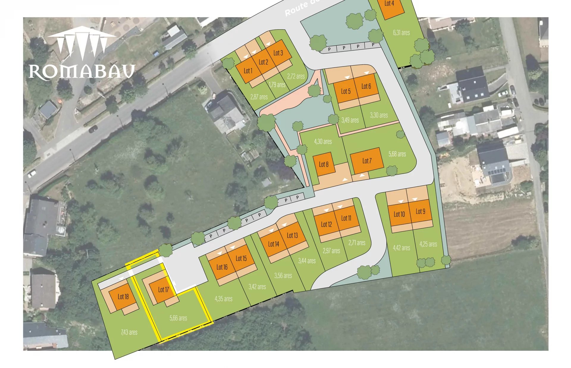 Das Los 17 mit einer Fläche von 5,66 Ar sieht ein Einfamilienhaus mit moderner Architektur und einer Wohnfläche von 175,6 m² vor.