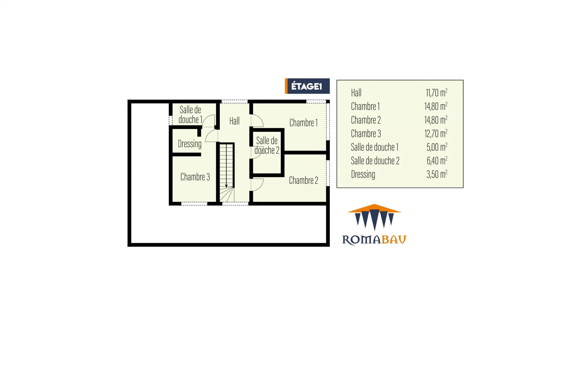 Das erste Obergeschoss besteht aus einem Flur, ein Hauptschlafzimmer mit Ankleideraum und eigenem Duschbad, zwei weitere Schlafzimmer und ein zusätzliches Duschbad.